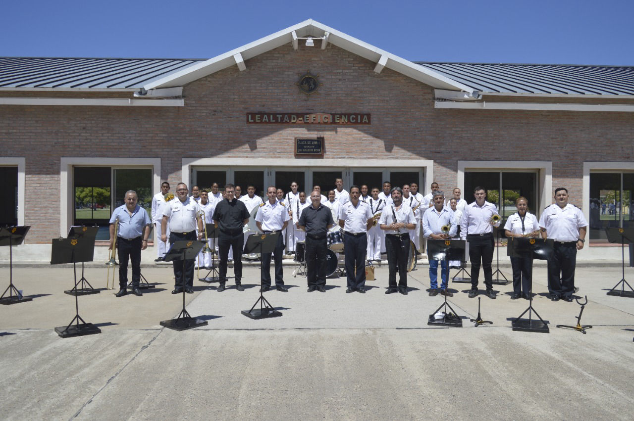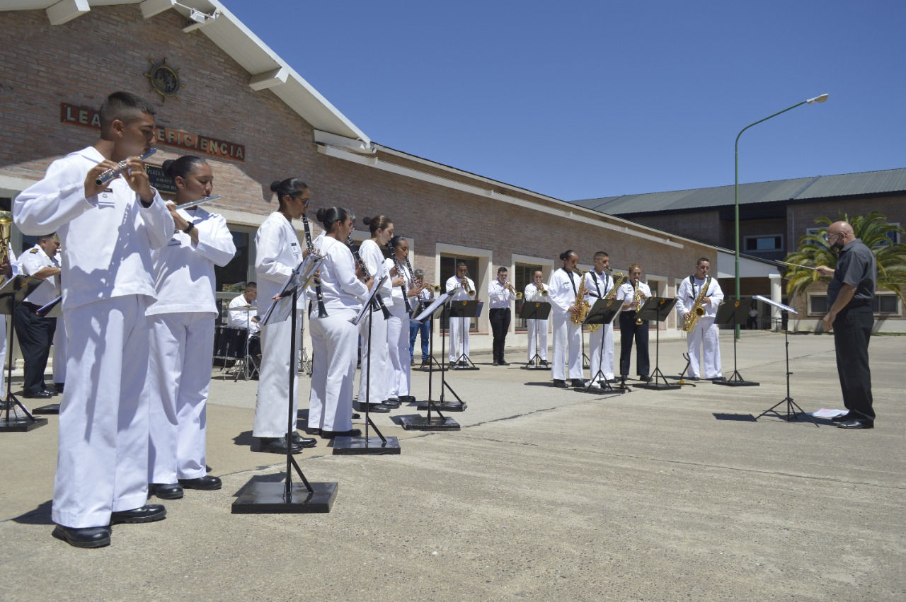 Por su parte, el Jefe de Estudios y Capacitación Física, Capitán de Fragata Manuel Alejandro Lazarte, destacó el esfuerzo y dedicación de los futuros músicos que integran la banda e instó a los aspirantes que componen los demás escalafones a no decaer ante las adversidades que nos ha traído la pandemia, indicando que la responsabilidad y el compromiso con la tarea asignada siempre dan buenos frutos.